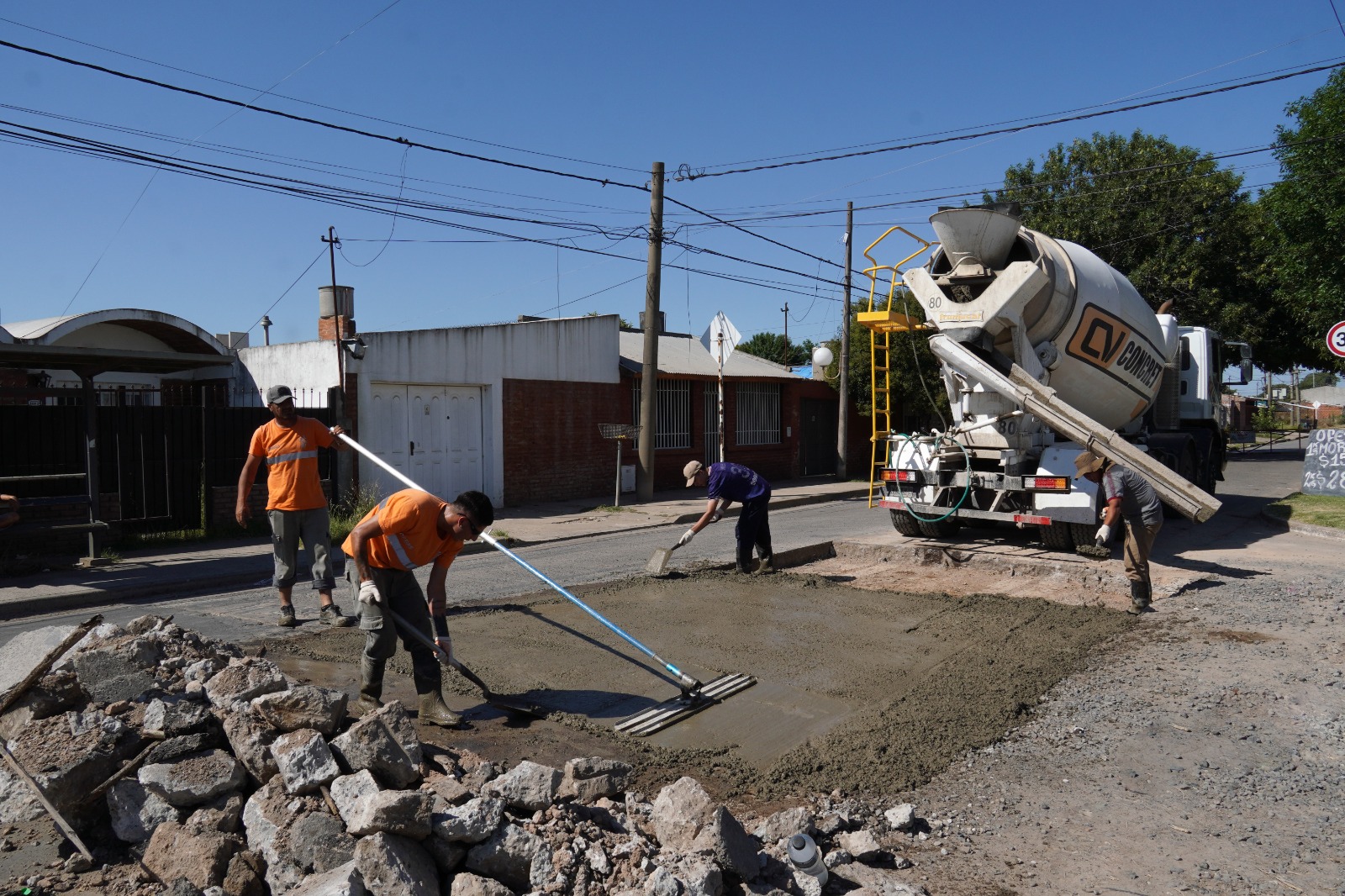 En las últimas horas se procedió a los trabajos de colocación de Hormigón sobre las veredas a la altura de España y Paraguay, y trabajos de bacheo en España y Carriego.